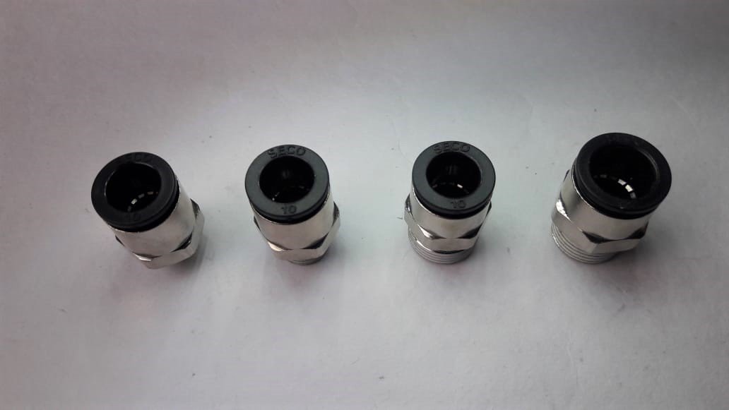 Compatible Fluids :- Compressed Air. ( SECO Push-in fittings can also be used with various fluids, cutting oil, water etc. for various industrial applications. Pl. consult us for different fluid applications.) |